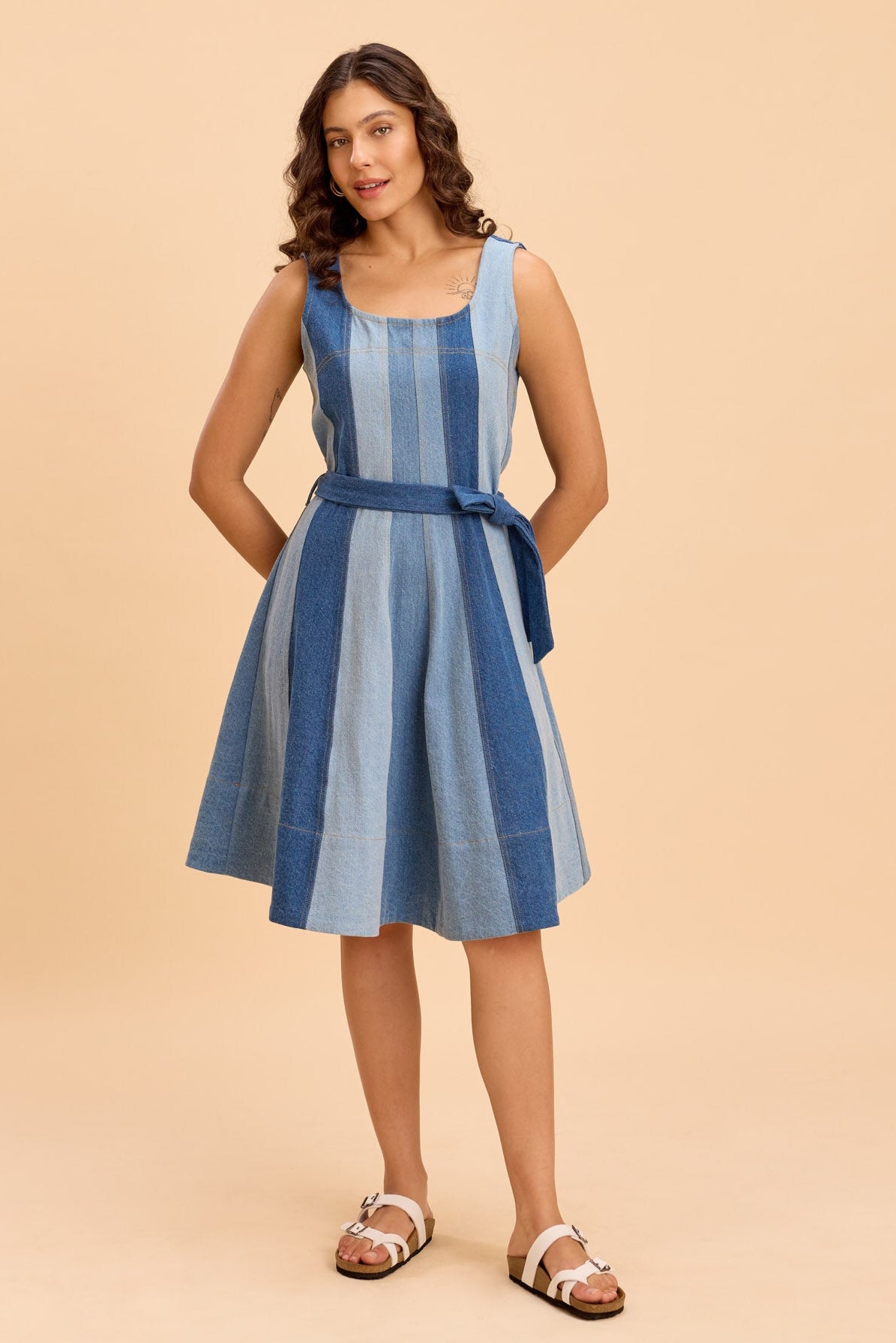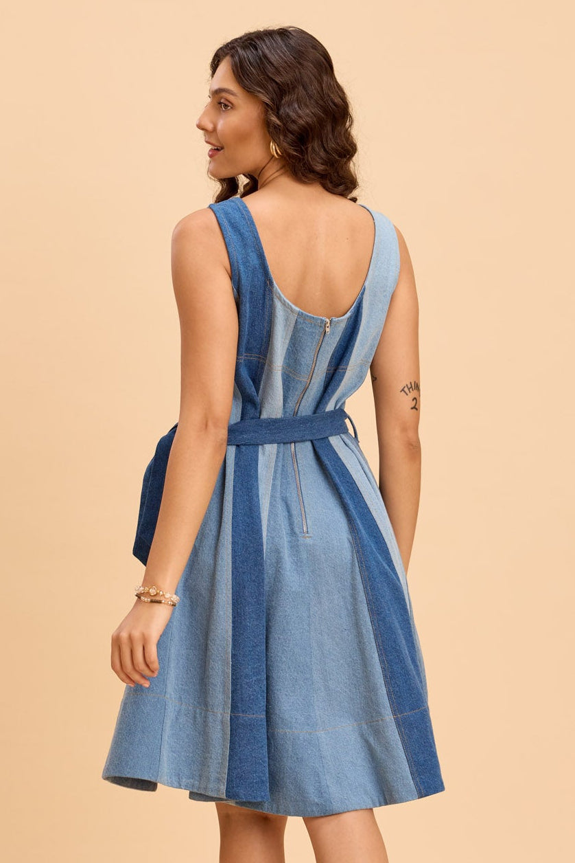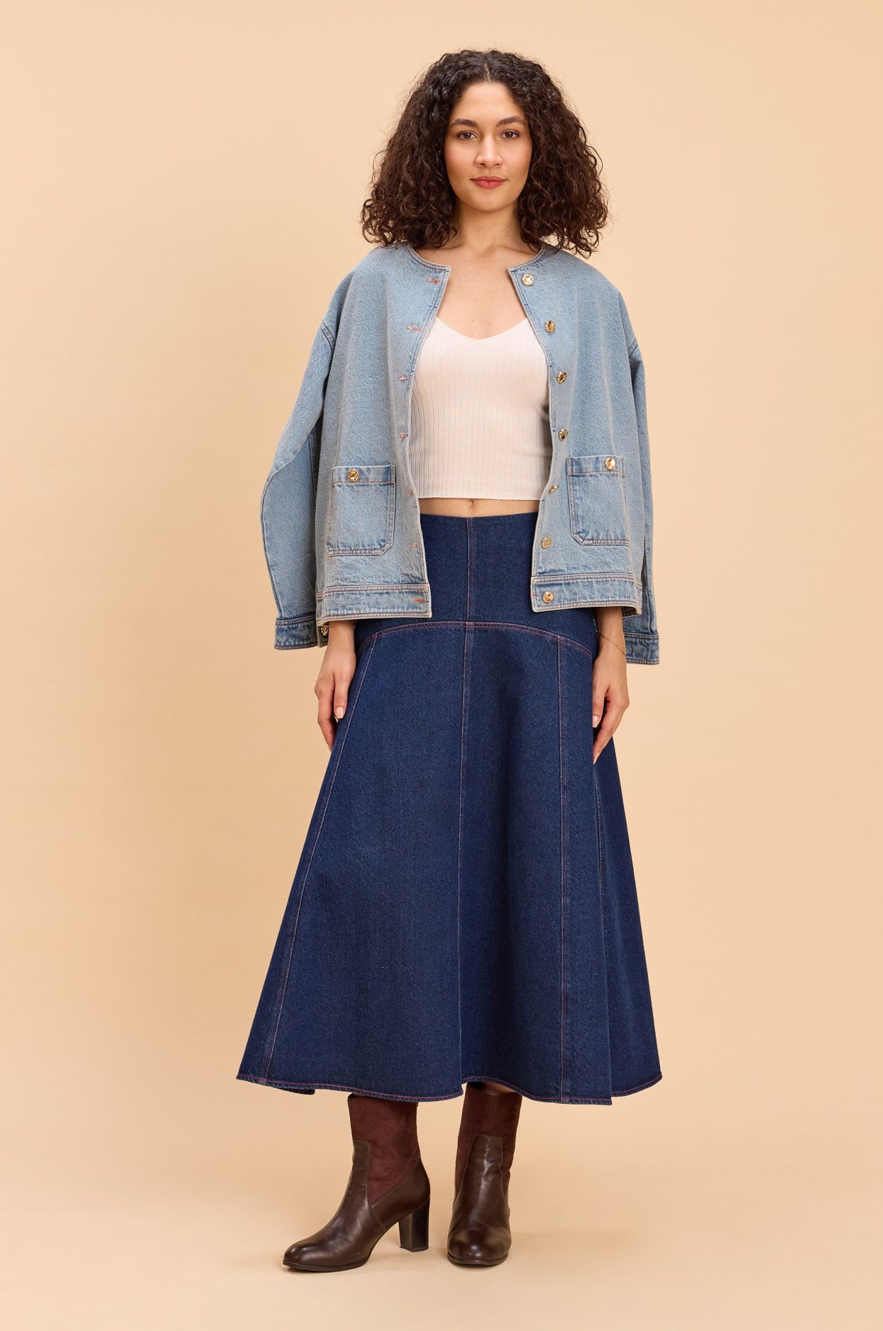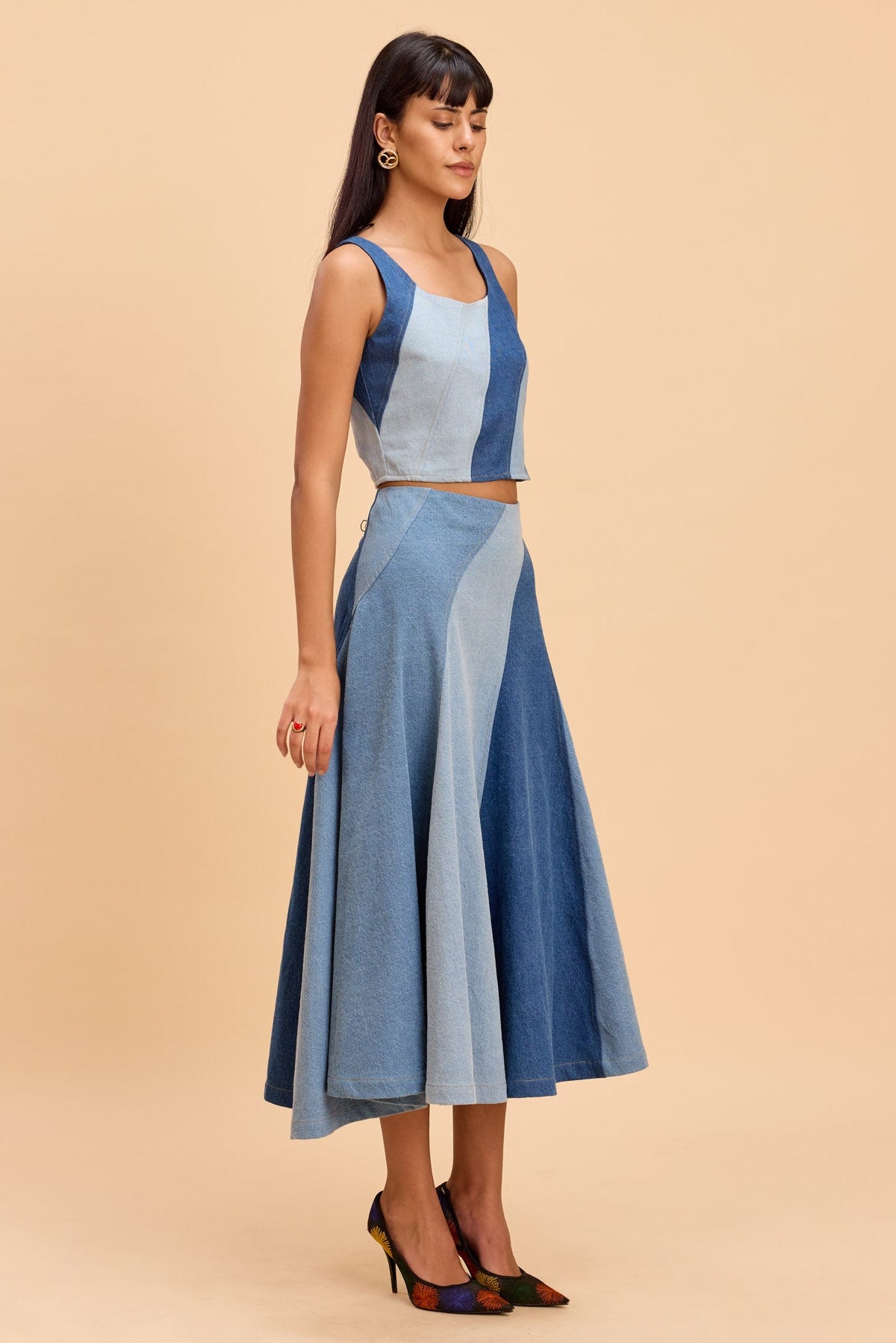ALICE A LINE MAXI COLORBLOCK DENIM SKIRT