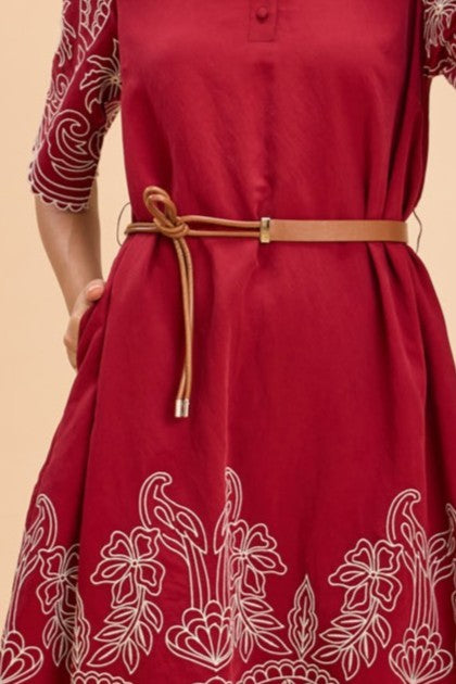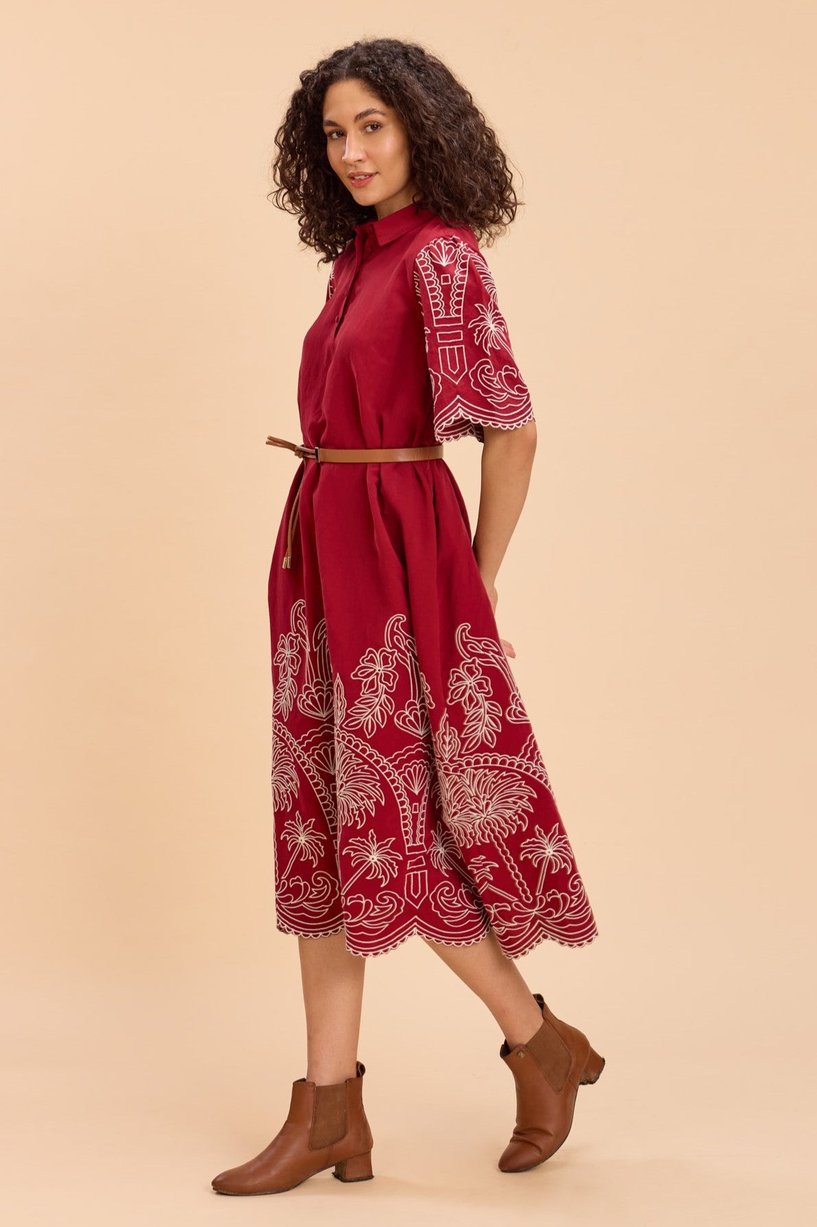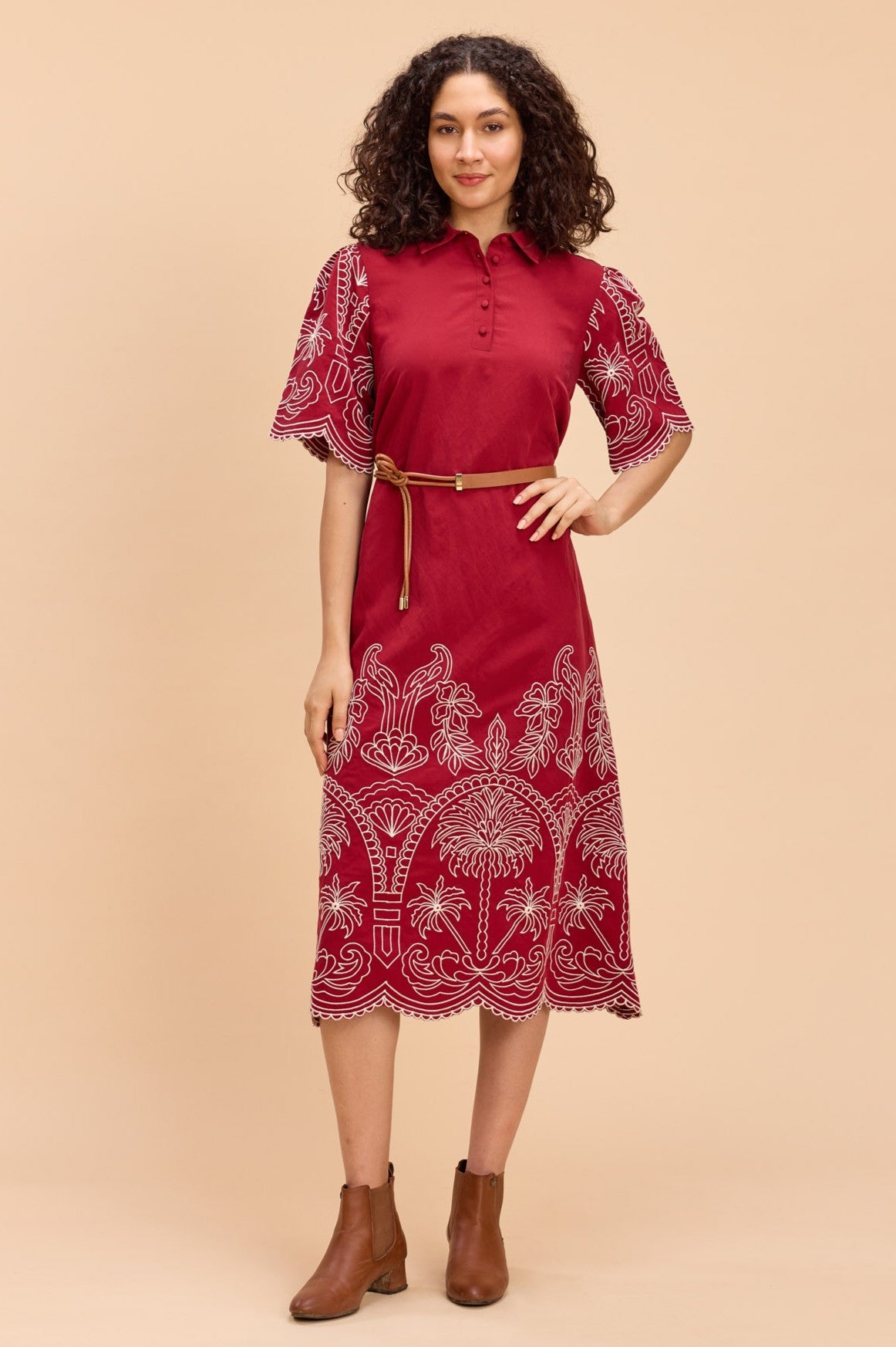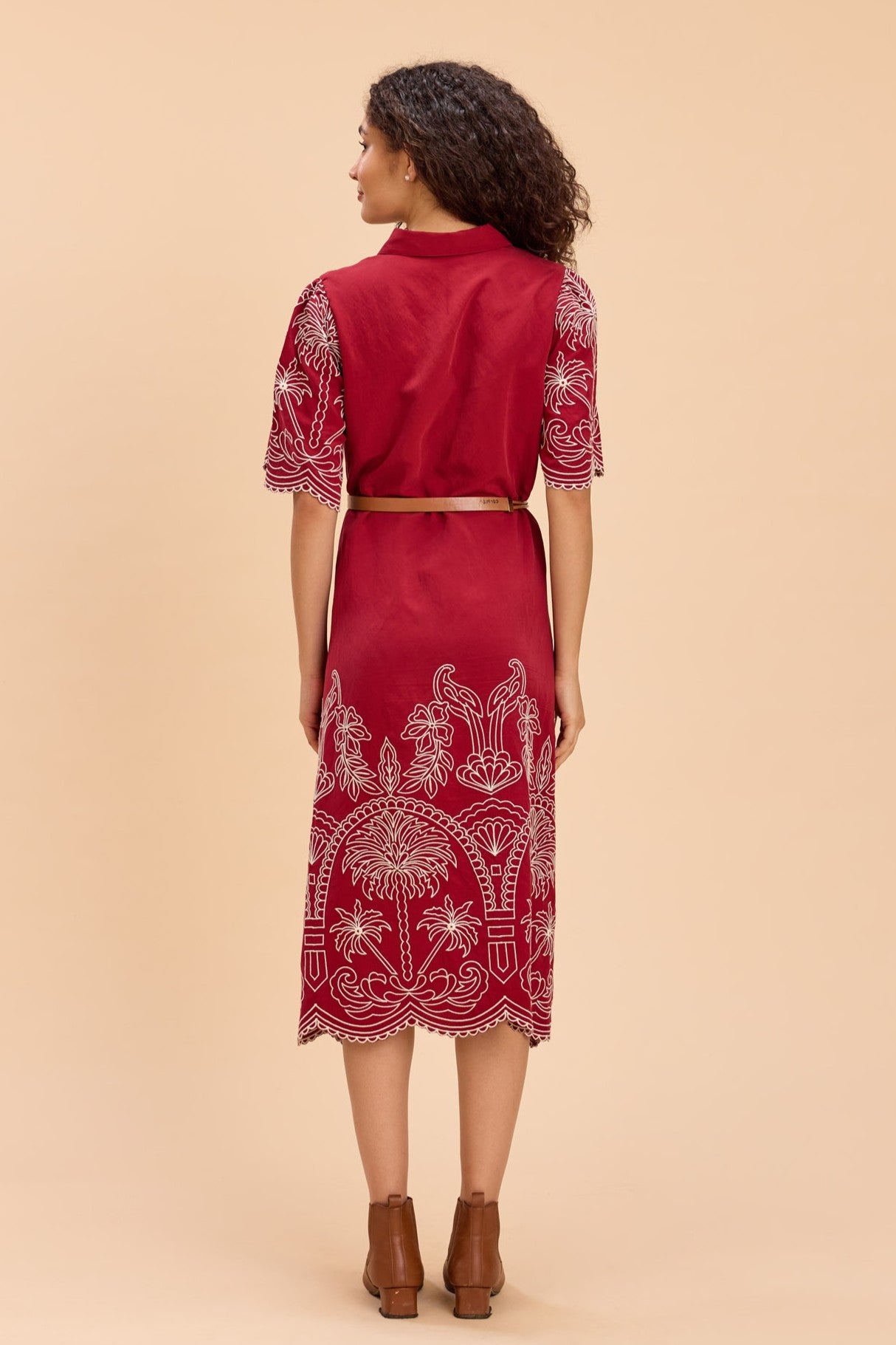 ALBA VISCOSE MIDI EMBROIDERED DRESS