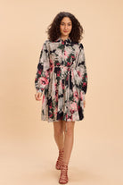 DANNI FLORAL FIT AND FLARE SHIRT SHORT DRESS