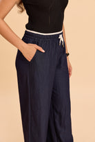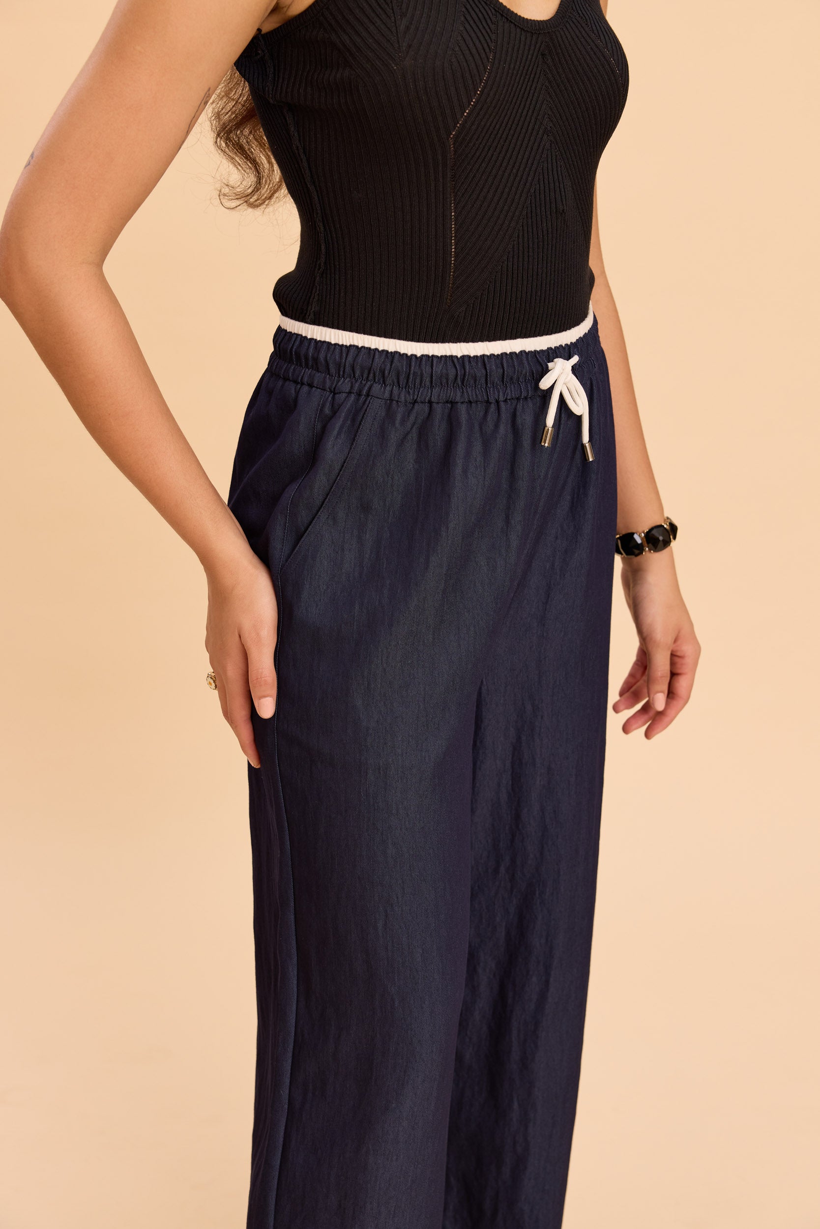 ASTRID WIDE ANKLE DENIM PANTS WITH CONTRAST WAIST BAND