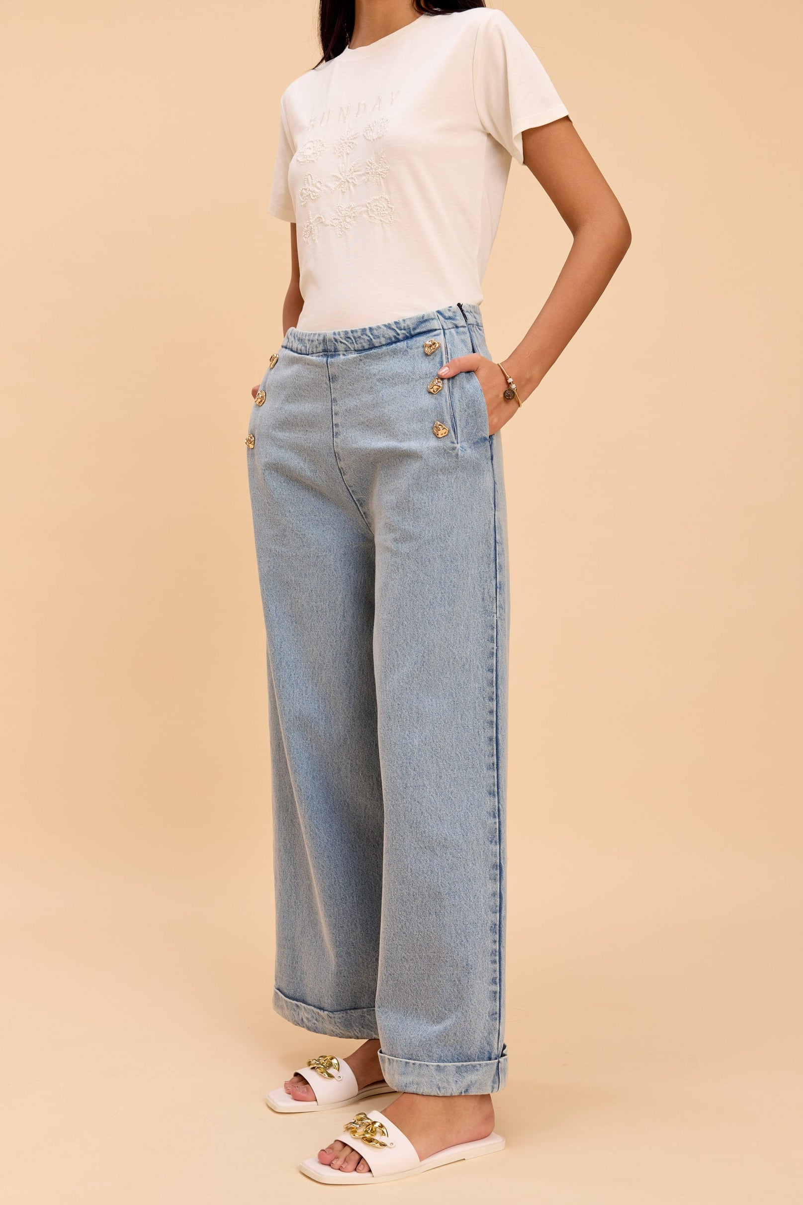 AVERY RELAXED WIDE LEG DENIM PANTS