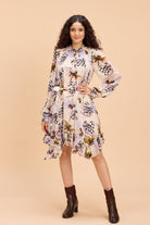 Made for feel-good days, this short all-over print dress features a dreamy watercolour-effect botanical print that feels fresh and feminine. Designed with an asymmetric hemline and subtle ruffle details, plus a self-fabric belt to define the waist, it’s perfect for brunch dates, garden parties, vacations, or easy daytime celebrations.