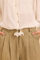 BAILEY COTTON VISCOSE POET BLOUSE WITH 3D FLORAL EMBELLISHMENTS