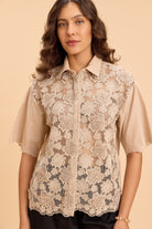 TULIP 3D FLORAL LACE SHORT SLEEVE SHIRT