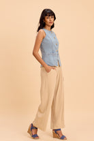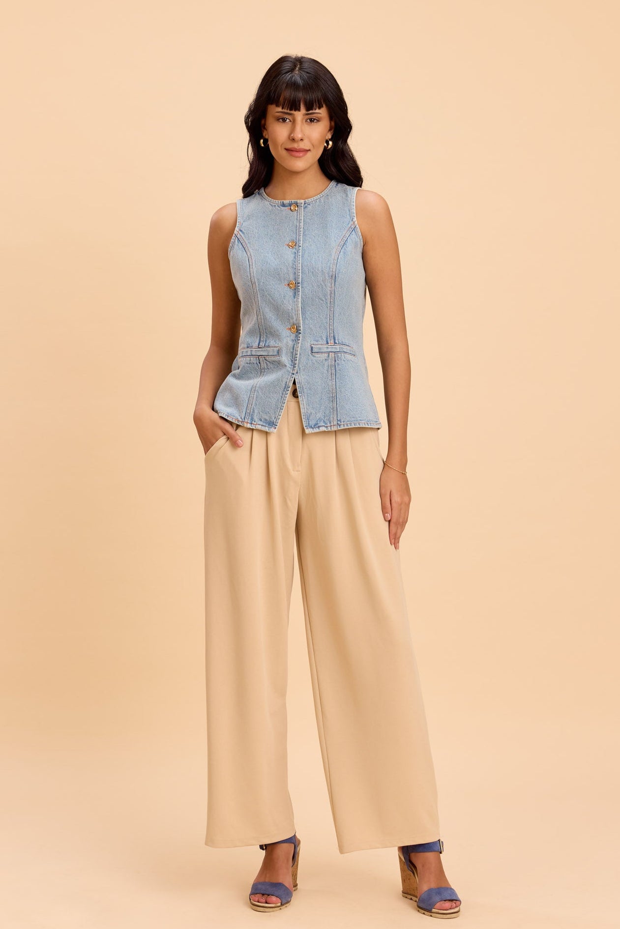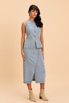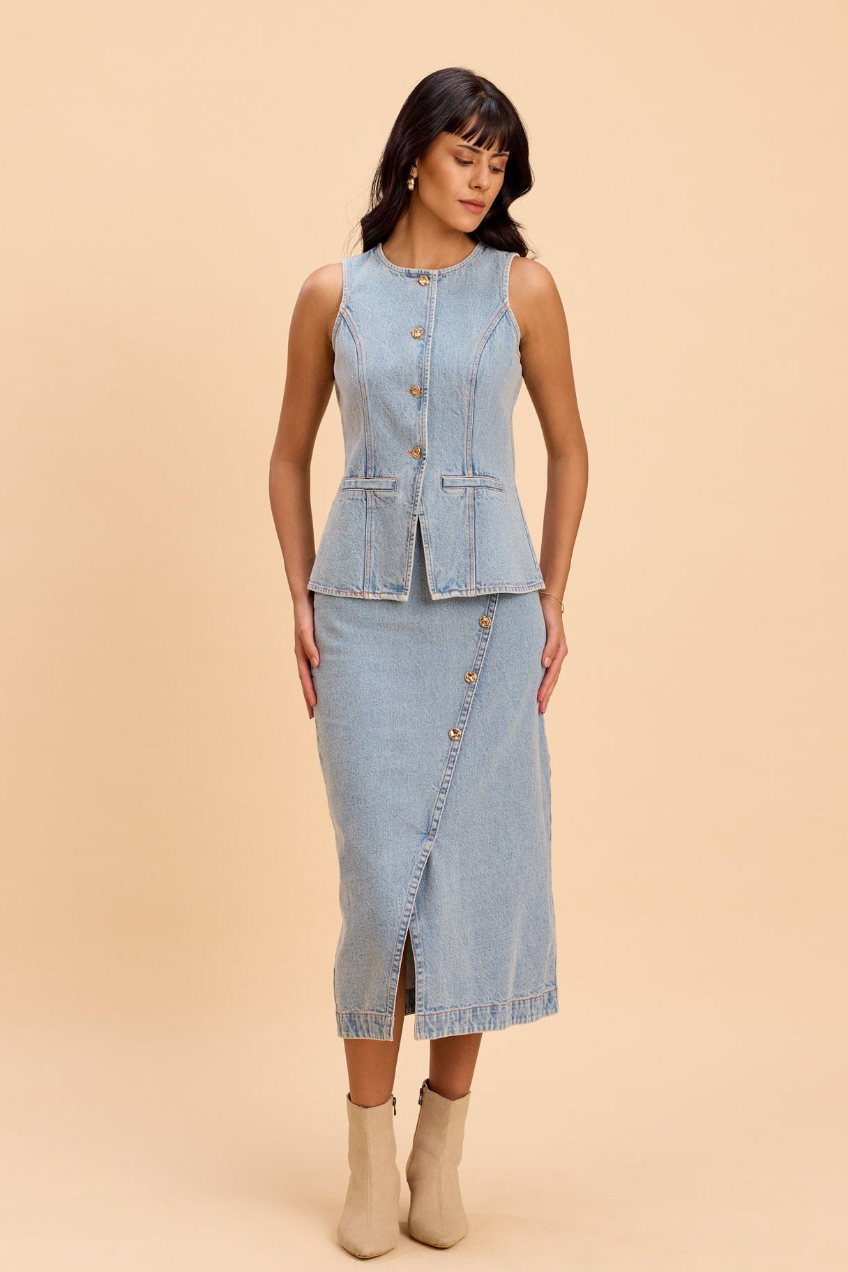 IRIS COTTON DENIM LONGLINE VEST WITH STATEMENT BUTTONS