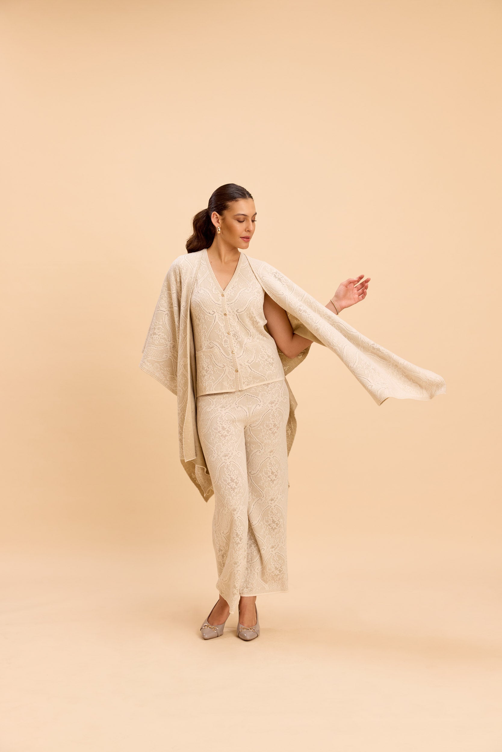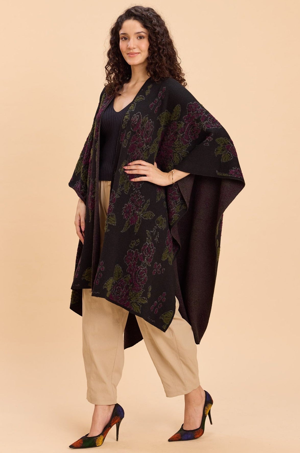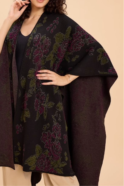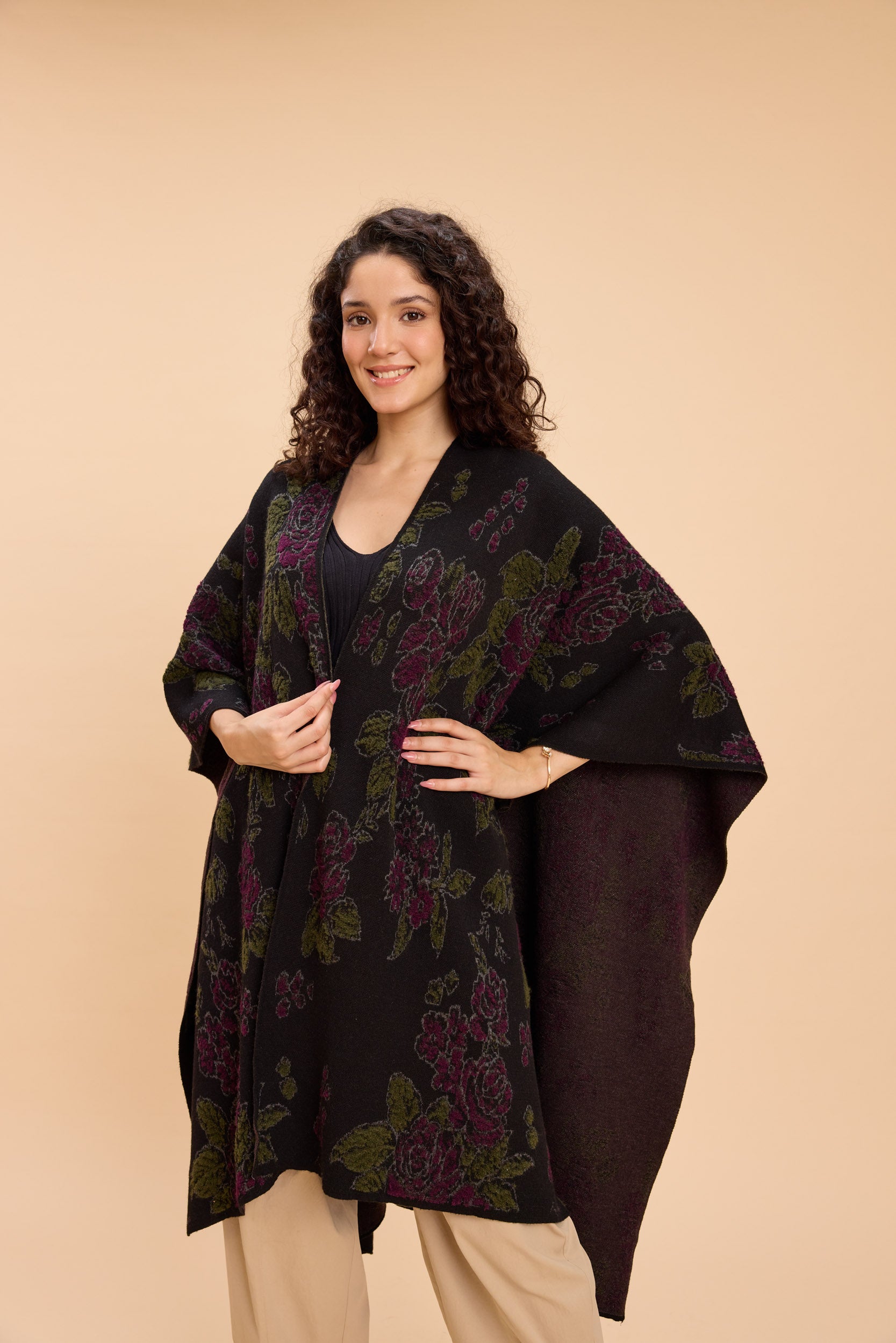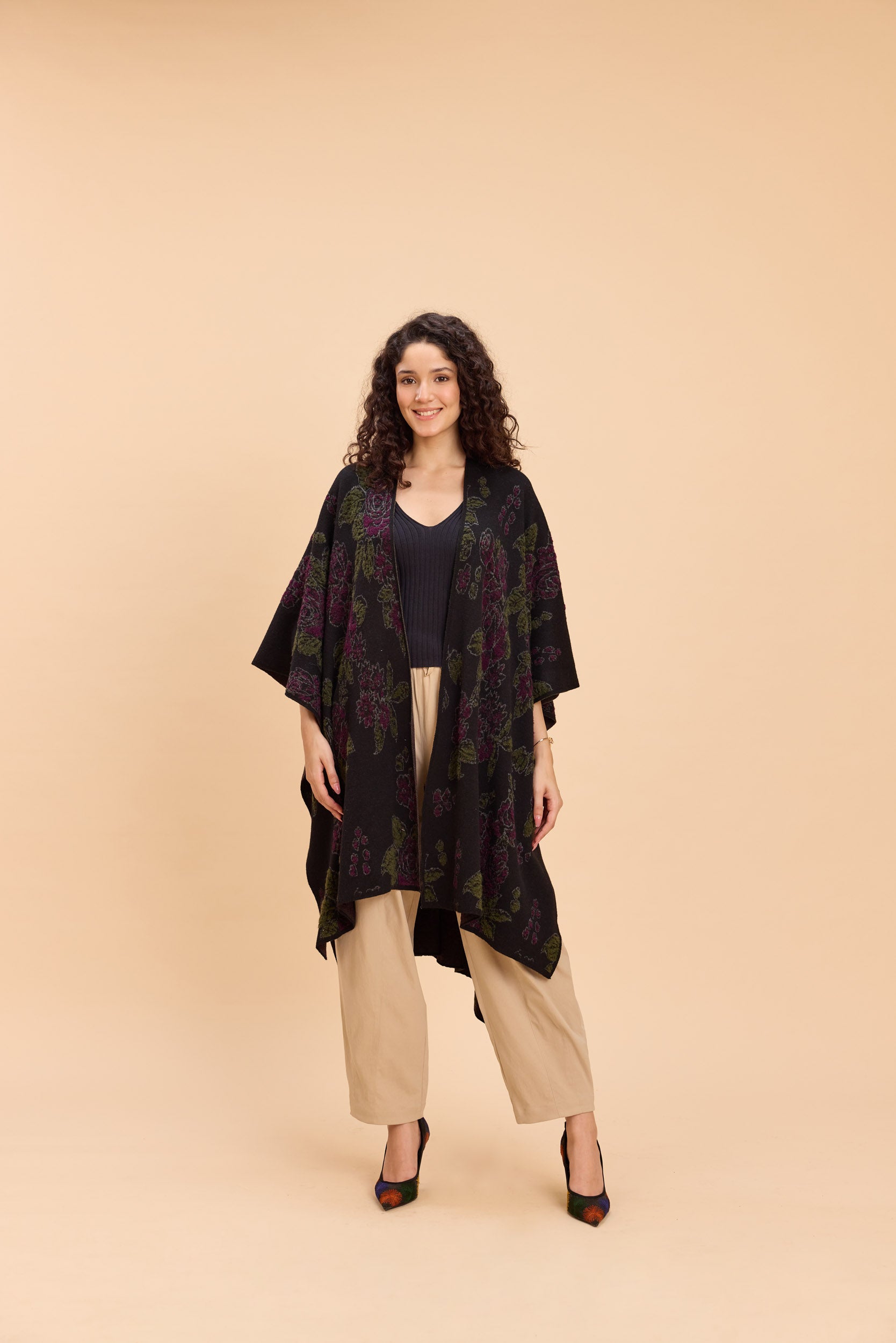 JOLLY JACQUARD OPEN FRONT CAPE KNIT
