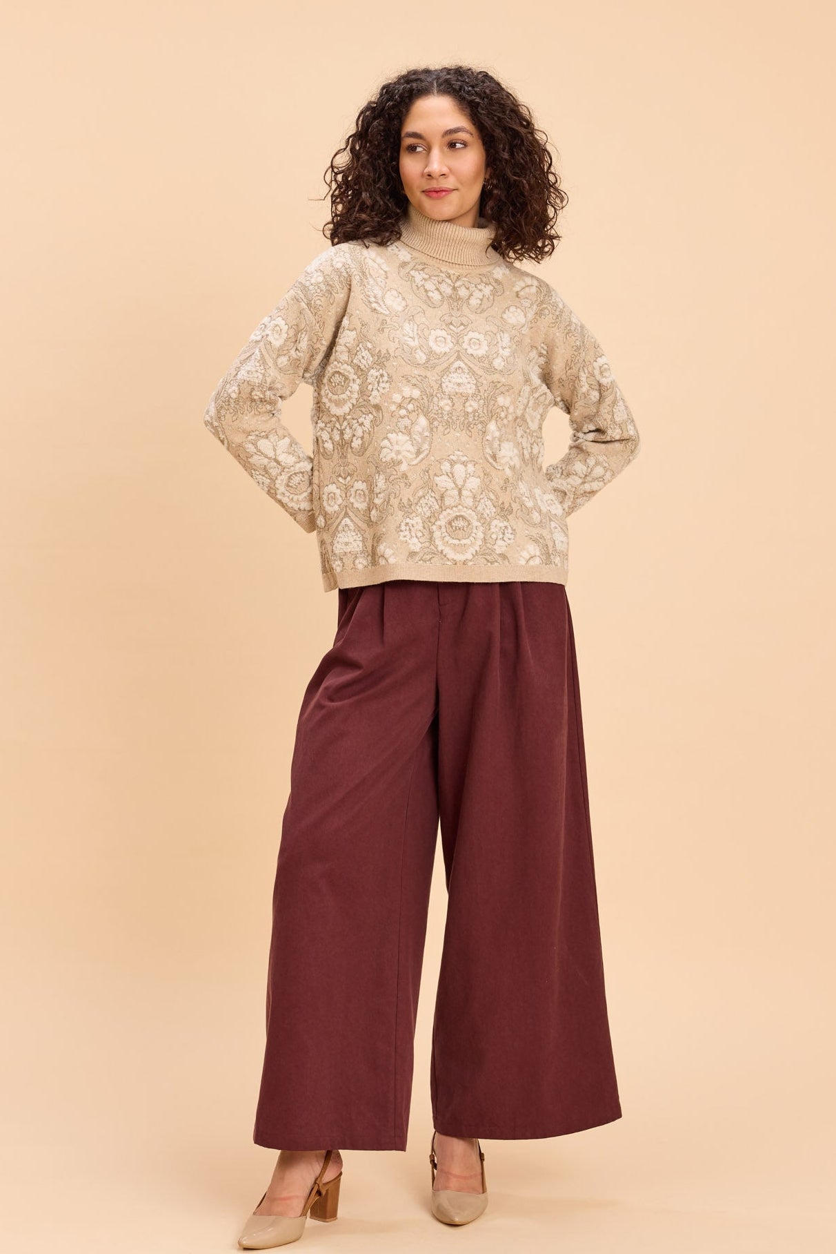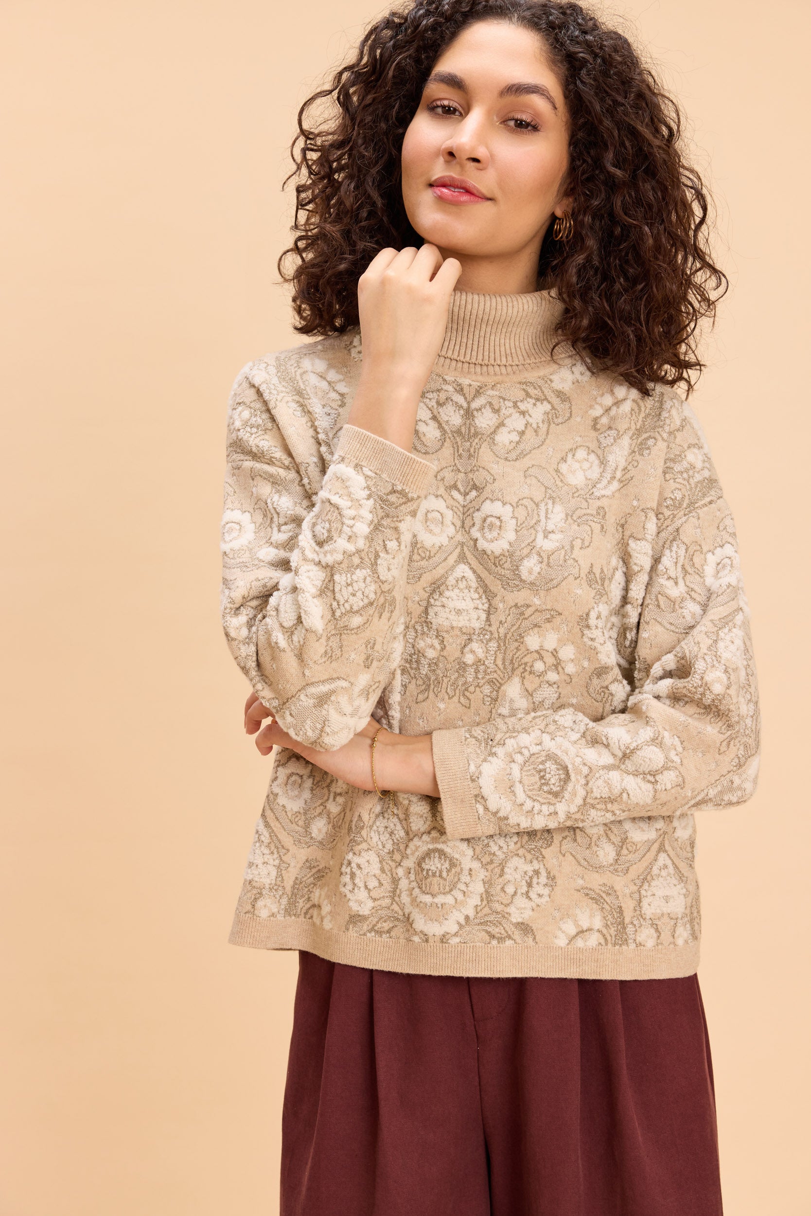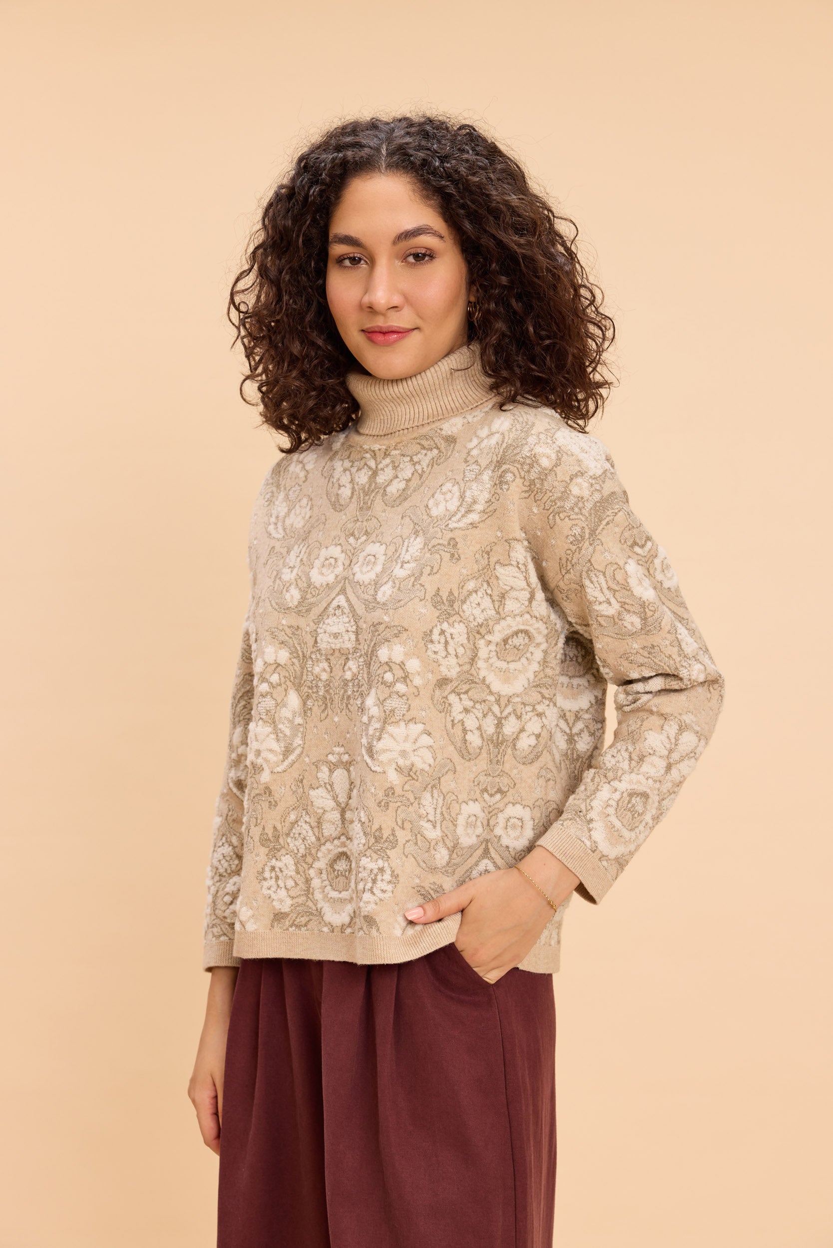 FIONA TURTLE NECK PULLOVER WITH INTRICATE JACQUARD PATTERN