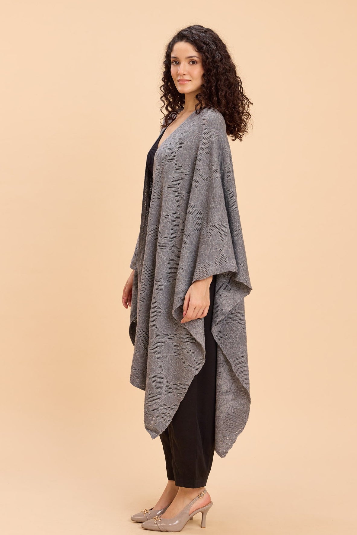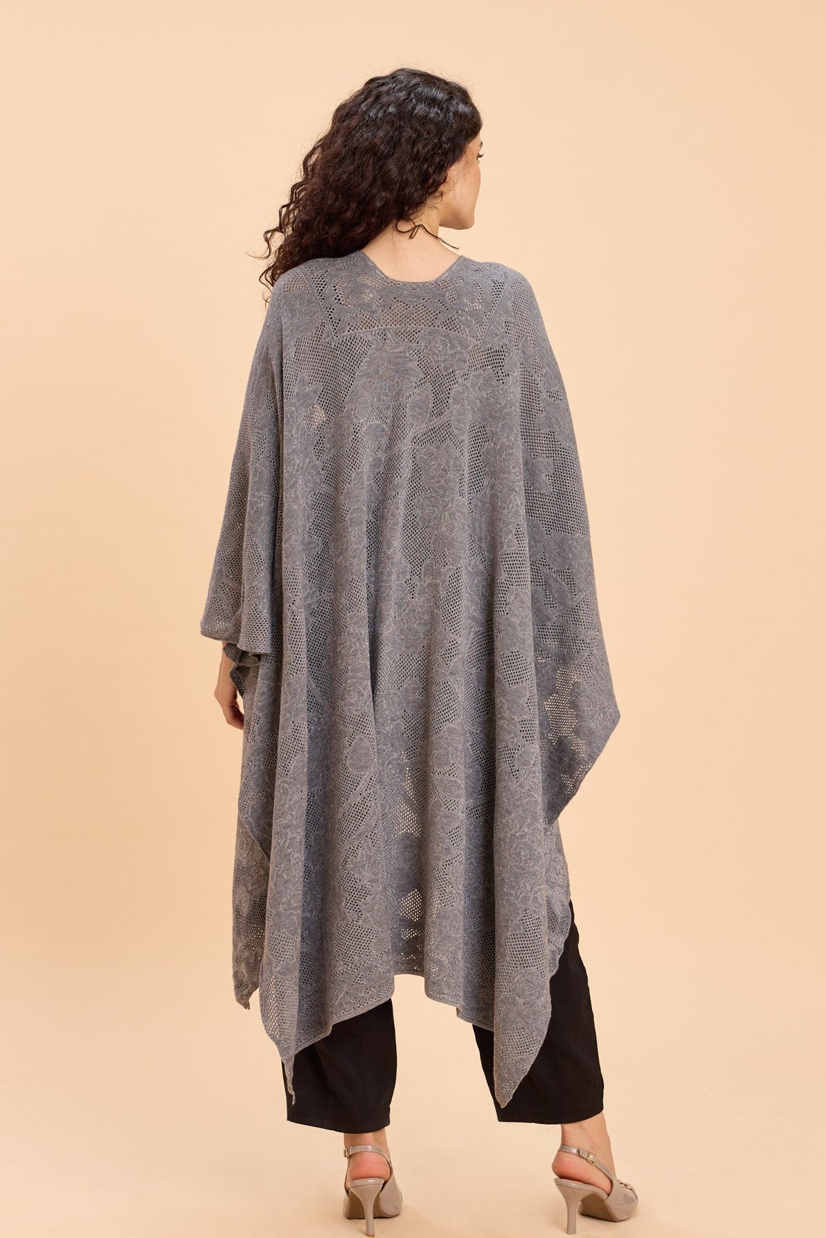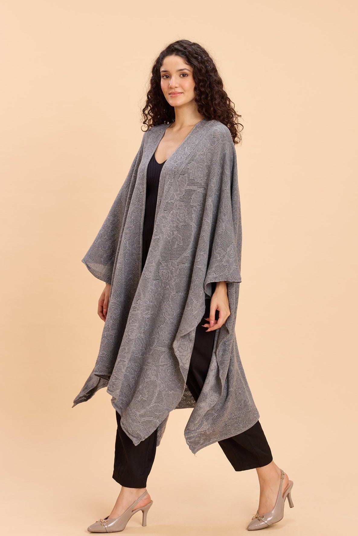 JOLLY LACE JACQUARD FRONT OPEN KNITTED CAPE