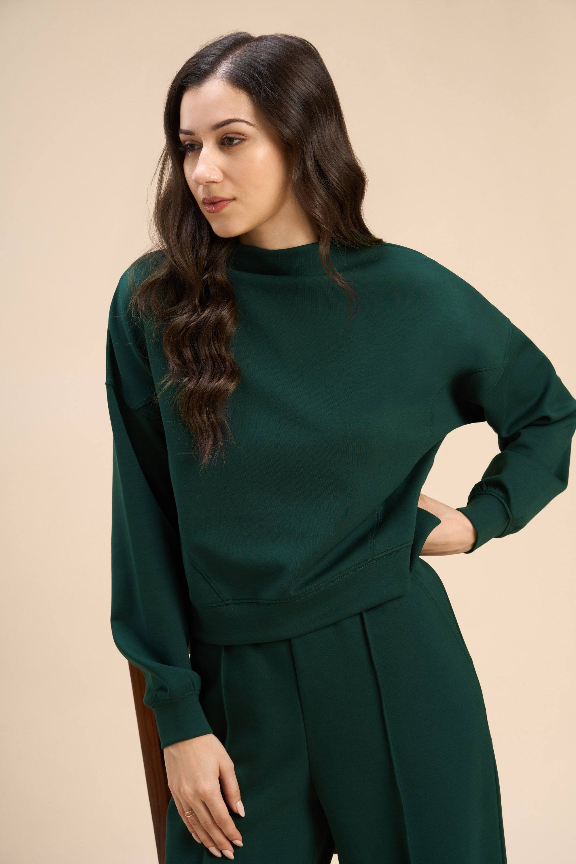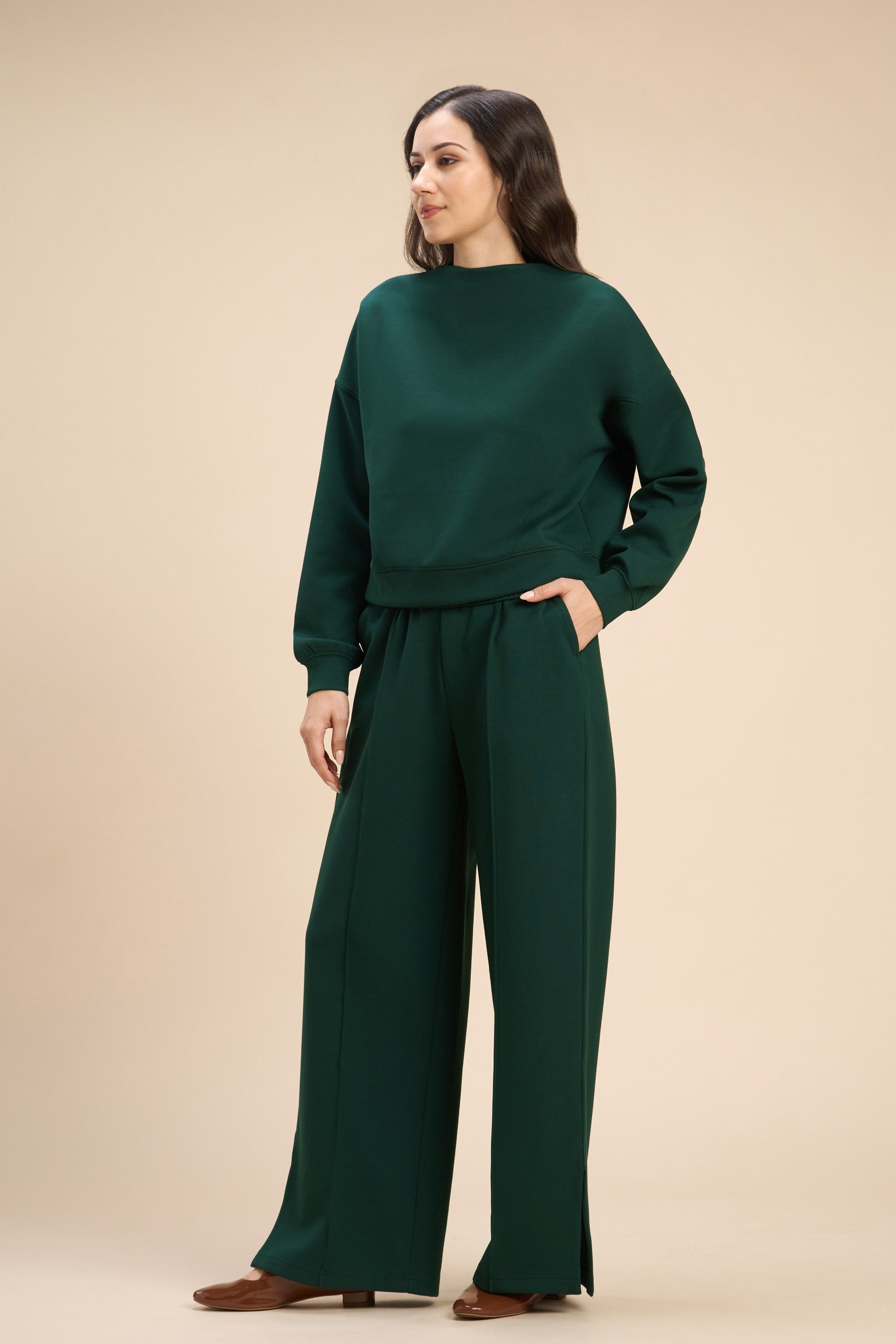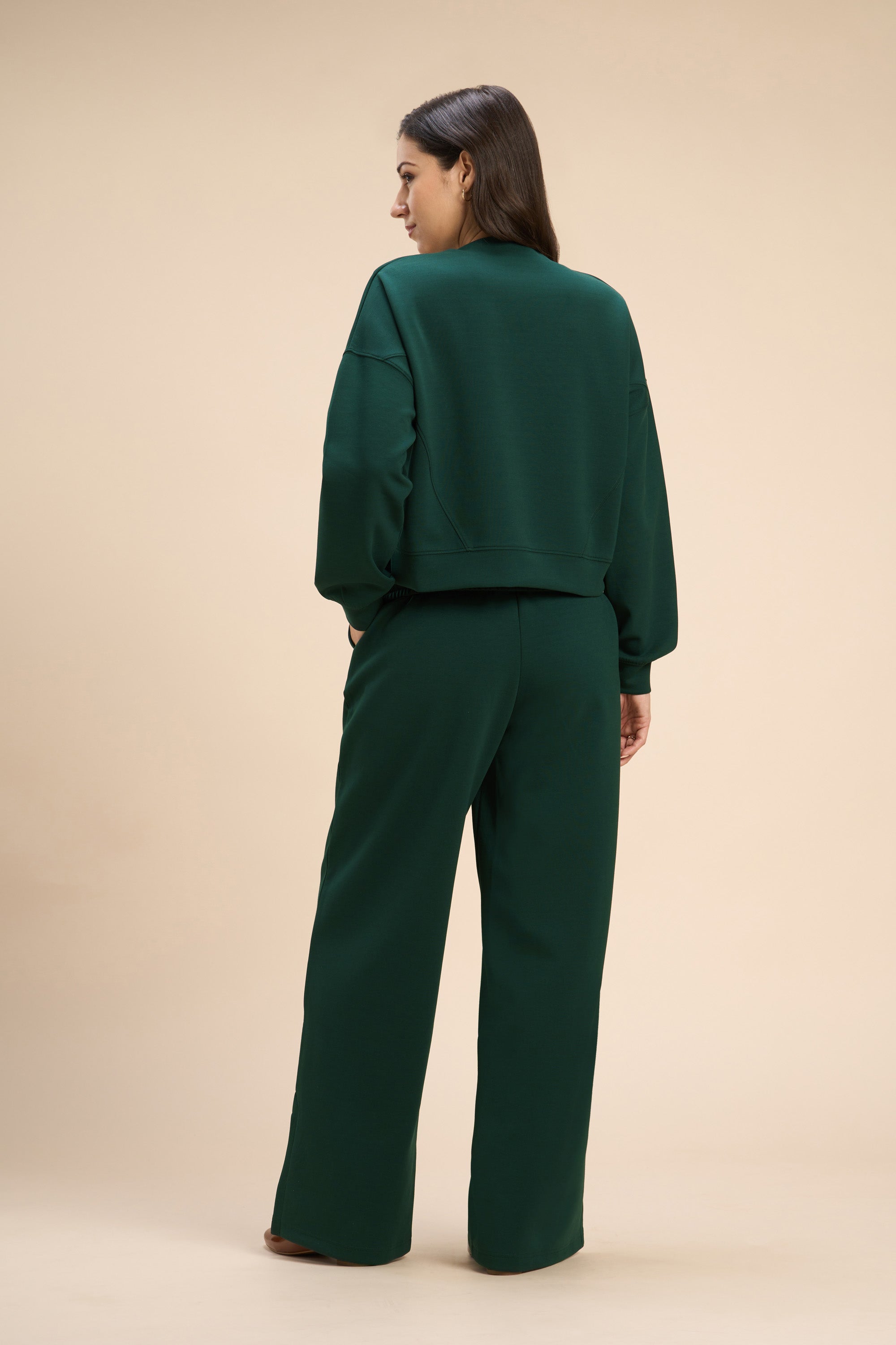 Effortless and elevated, this sweat co-ord set features a panelled sweatshirt and wide-leg pants with a sleek pintuck detail. Ideal for on-the-go days, coffee catch-ups, or easy day-to-evening wear, it blends comfort with modern style