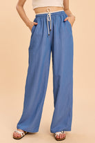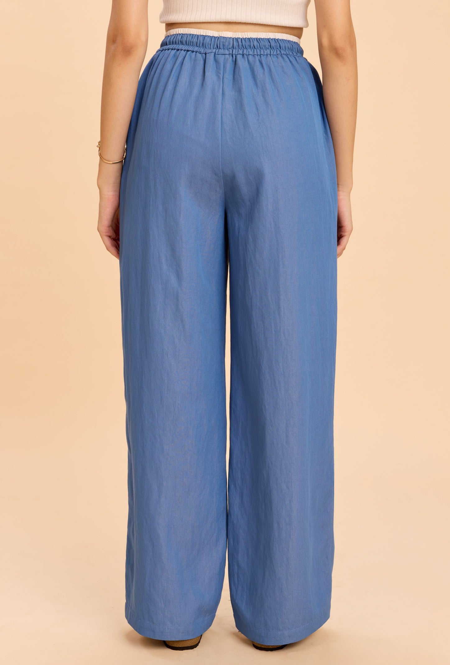 Wide Ankle length pants with contrasting drawstring and side pockets