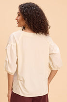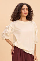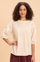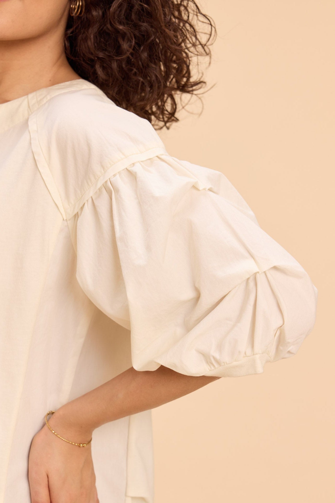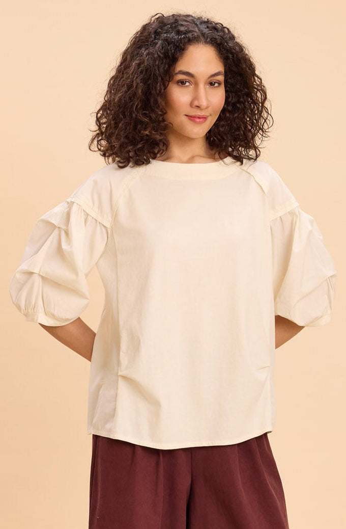 Knit Top with voluminous gathered puff sleeves and raglan seams
