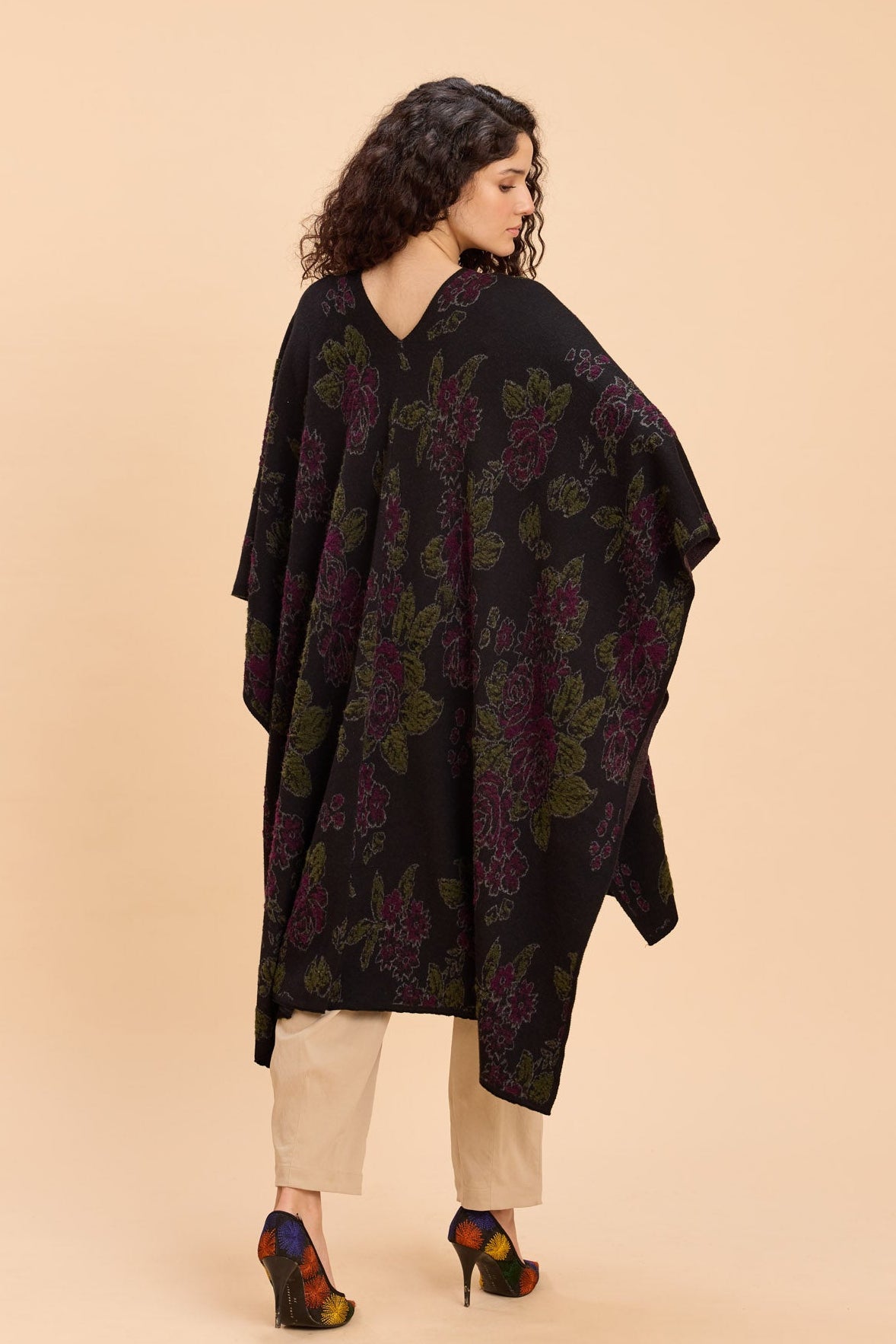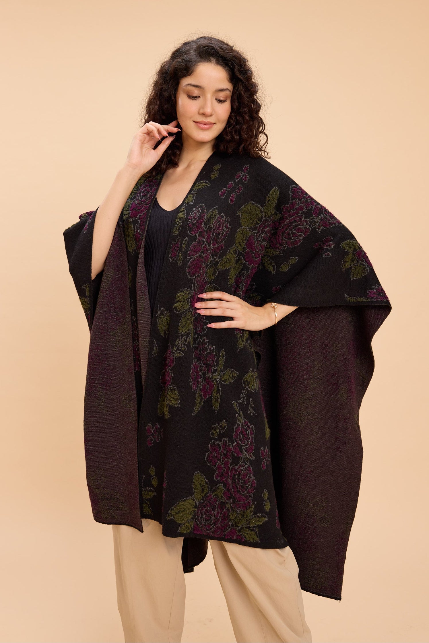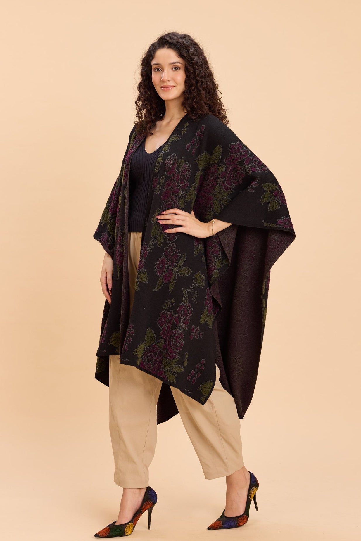 JOLLY QUADRA BLEND JACQUARD FRONT OPEN KNITTED CAPE