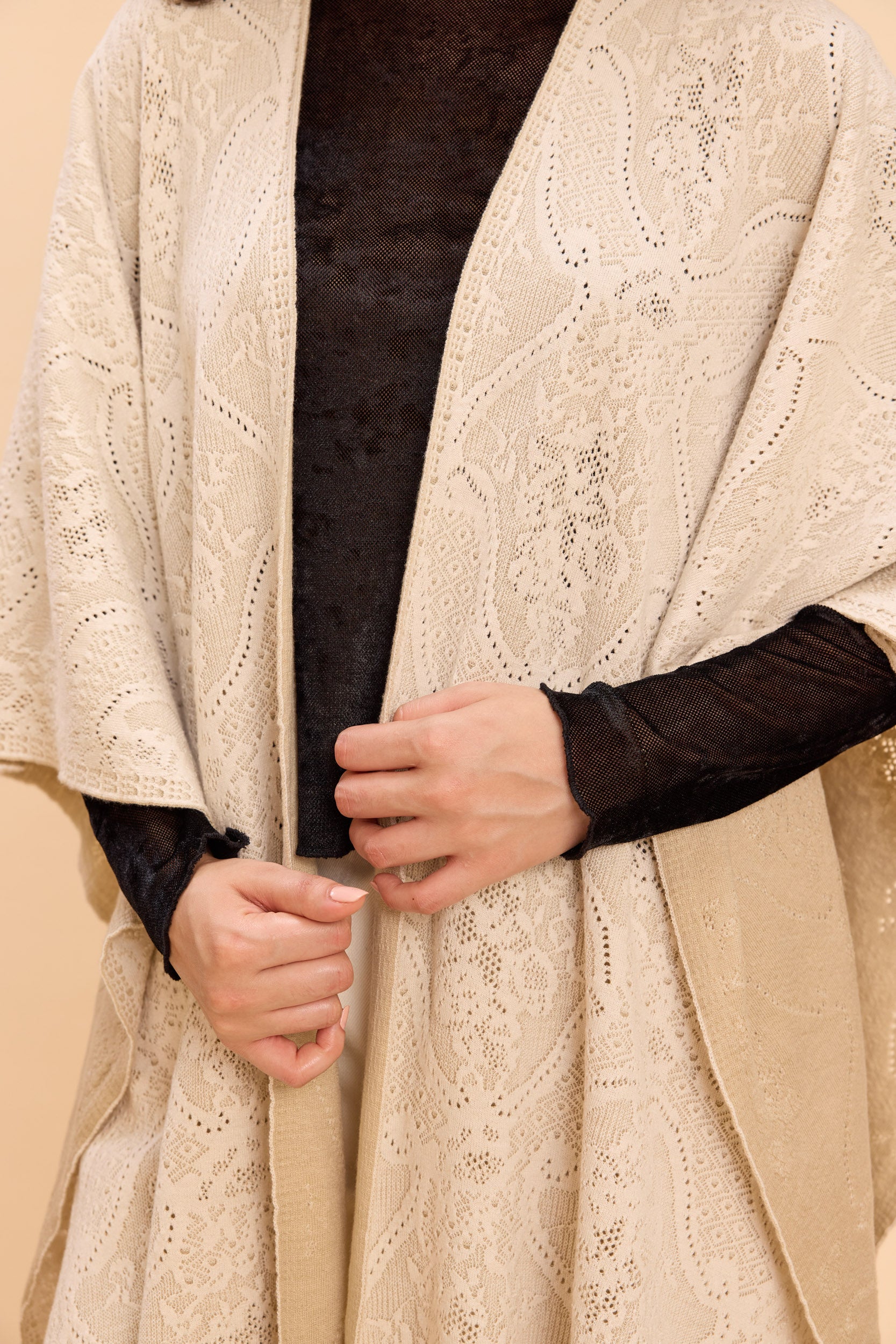 WINNY LACE JACQUARD FRONT OPEN KNITTED CAPE